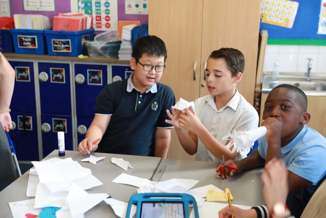 手工课:体验英国特色手工课,同学们积极迎接挑战,合作制作模型。