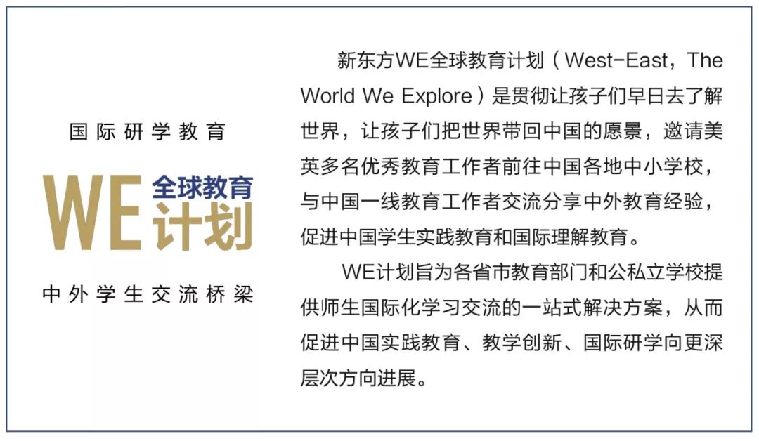 WE计划致力于全国中小学校与境外优秀学校结为友好姐妹学校,定期开展师生互访交流活动,带领更多的孩子走向世界,让孩子享受高品质的海外游学项目,在行走中打造国际化视野。