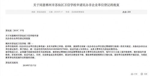 文郡未来学校借用原苏仙区万信学校的校址,将在原有基础设施的基础上进行全面升级改造,打造一所设施完善、富有办学特色的高端九年一贯制学校。文郡未来学校拟开办班级72个,学生预计规模3200人,采用小班制教学,小学控制在45人以内、初中控制在50人以内。