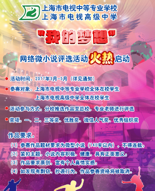 值得一提的是,上海电中的校园文化活动已不仅局限于校园,还开发新渠道将活动的影响辐射到社会。2017年3月上海电中举办了“我的梦想”微小说活动,是电中首次依托自媒体进行宣传推广。活动期间,工作组收到来自16家分校的九十余篇作品,经过评委小组的评选,产生了20篇优秀作品。在随后依托电中官微进行的投票活动中,在线投票人数近10000人,投票界面访问量达14650次,投票数达20000票,活动收获了社会良好的评价与反响。
