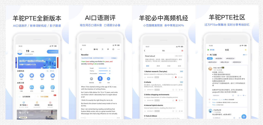 2018年3月,仅仅成立半年的羊驼教育推出业内首个PTE备考APP,为考生提供全方位的考试帮助。为了满足用户需求,PTE-APP在一年内更迭了28个版本,每次更新后都更加接近官方标准,为每一位PTE考生提供更加真实的练习环境。羊驼教育在APP逐渐增加主观测评题支持AI评分,研发PTE练习APP及模考练习网站等,均采用AI智能测评。每一个版本的上线都凝聚了羊驼教育的心血和努力。此外,羊驼教育独创的业内深度解析可编辑版本Excel机经,备考者使用次数超过20000人。