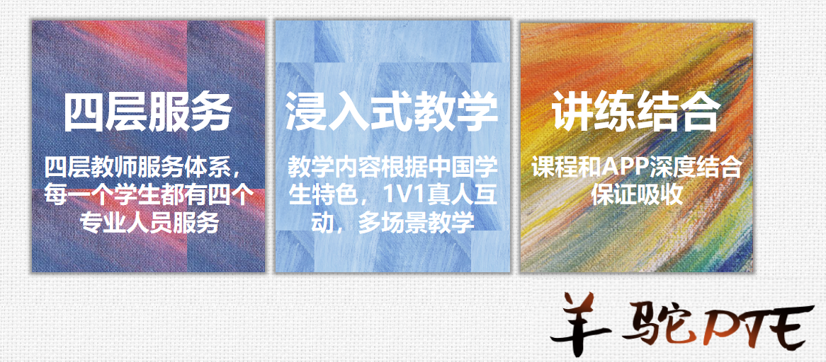 专注领域科学规划。作为一家技术驱动型的互联网教育公司,羊驼教育将科技作为公司发展的不竭动力,坚持技术与服务并重,立足当前,着眼未来,科学规划企业发展战略 。羊驼教育将研发现代科技与PTE考试紧密结合,利用人工智能AI大数据分析,颠覆传统教育。公司专注PTE领域,针对每一位考生,准确、快速的找出其英语薄弱项,提高教学效率,帮助考生更快通过考试,力求找准病根,对症下药,药到病除。