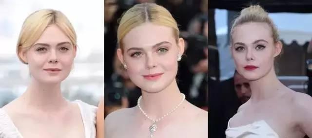 Elle Fanning在化妆造型上特别有自己的重点,第一就是底妆。从高清图上,能够看到Elle鼻子和额头上有很多雀斑,但是她从来不会为了遮住雀斑而花大力气去打底妆。