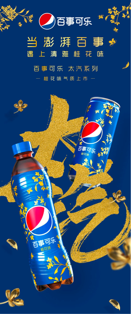 百事选择中国国民传统风味——桂花味作为新产品口味,可以看出百事对中国饮料市场的看重。