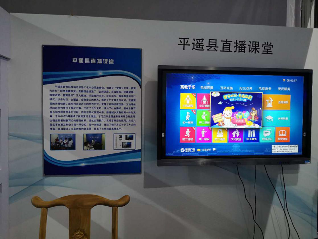 由263企业直播提供技术支持的平遥直播课堂作为晋中市第一个基础教育信息化应用项目,创新了政府和企业之间的合作形式,回应了民生关切,满足了社会需求,在发挥名师资源,推进教育资源公平方面取得了显著成绩,被列为山西省基础教育信息化应用的典型案例并受邀亮相此次成果展。