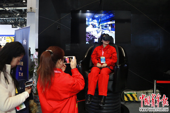 12月9日,北京国家会议中心,参观者在体验沉浸式展示设备。 中国青年报·中青在线记者 赵迪/摄