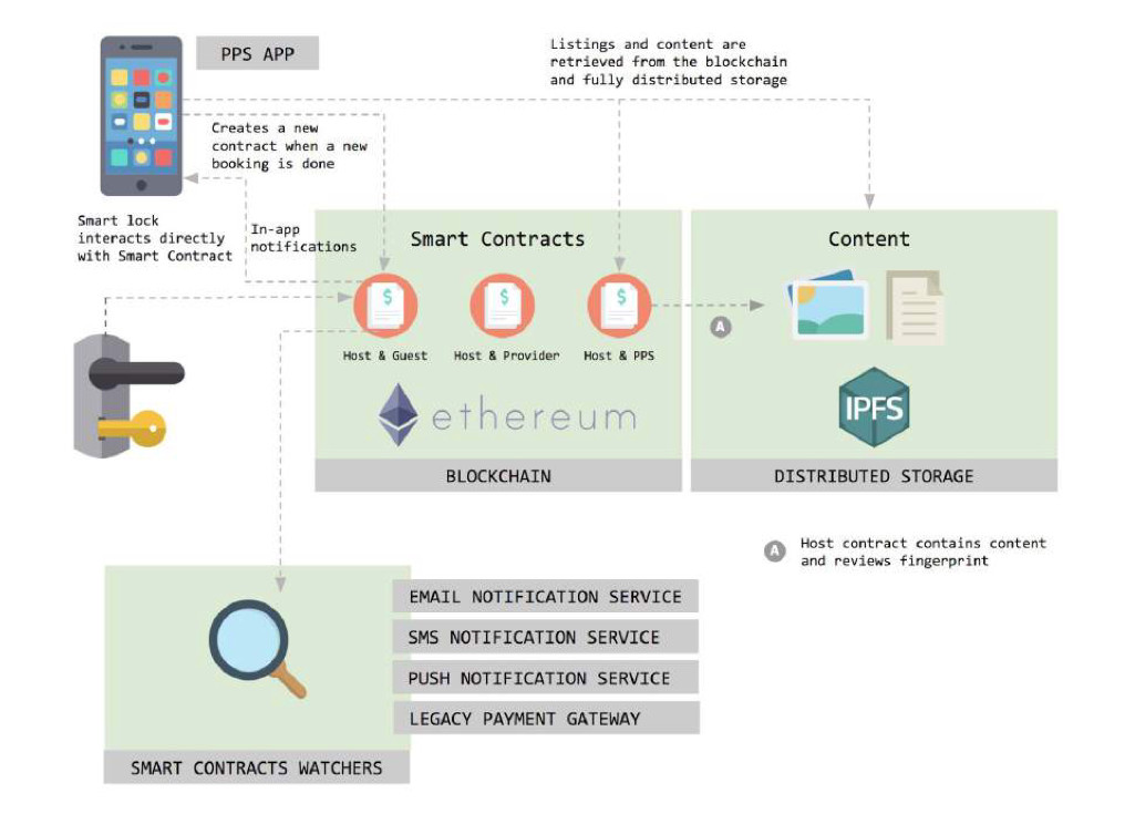 在PopulStay潮箱社区,基于以太坊上创建三类智能合约,房主和房源的合约、房主和房客的合约、房主和第三方服务的合约。