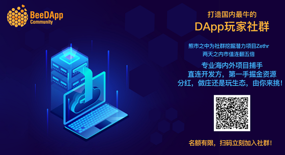 可以确定的是DApp将会是区块链和币圈的下一个风口,其中会造就非常多的热点话题和巨大财富,但能在早期抓住此番机遇必定是少数人,欢迎加入BeeDApp社群,不与此次财富机遇擦肩而过。