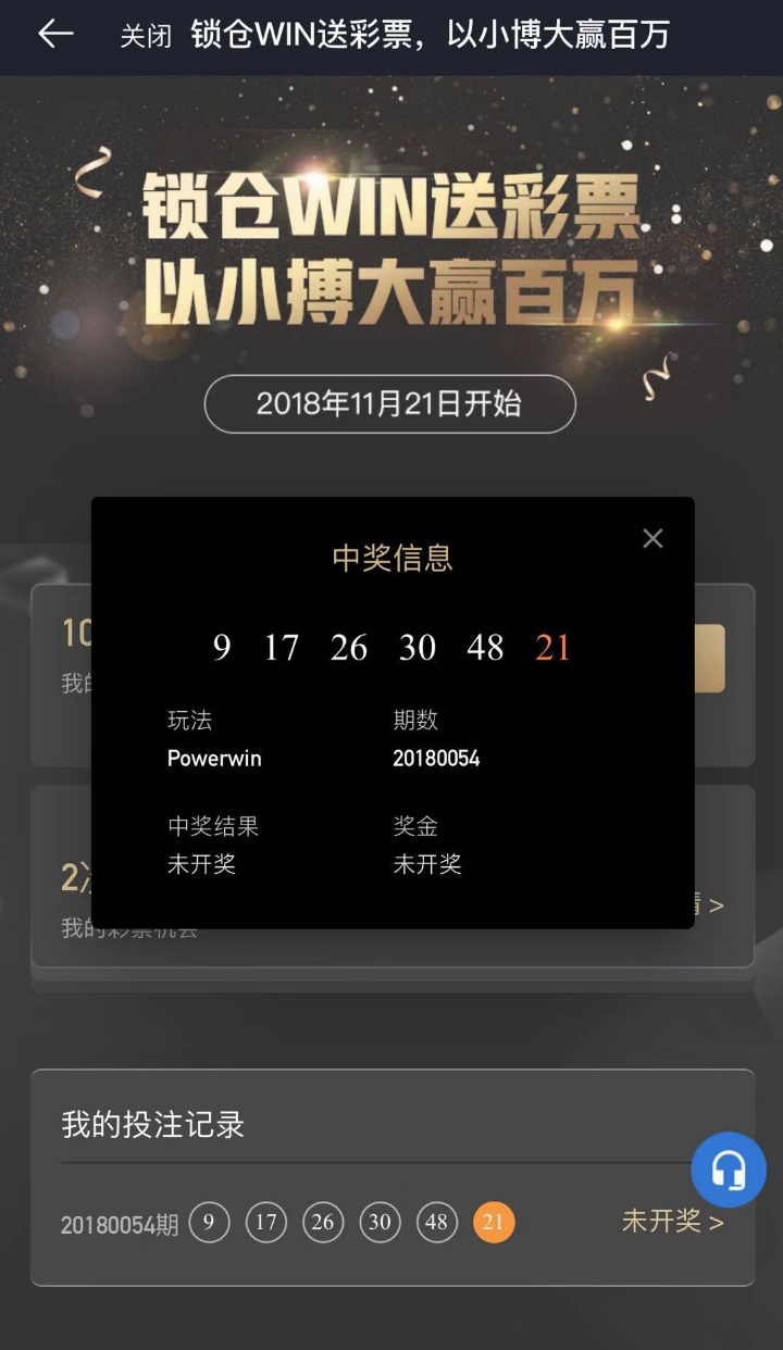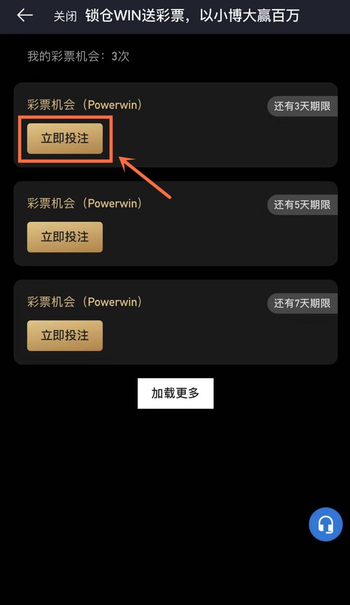 - 满足相应锁仓数量,锁仓成功后,即可获得Luckywin空投福利券,点击【立即投注】按钮,即投注成功。