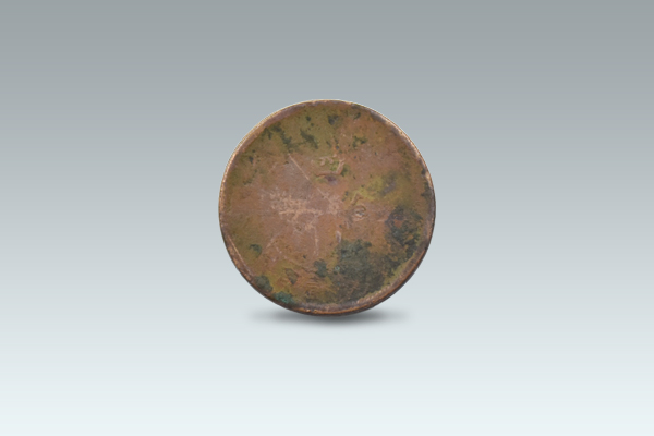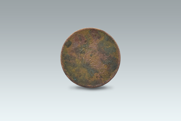 刘女士出手的这款军政府造四川铜币错位,正面中央珠圈内有“四川铜币”四字,上下左右分列,其中心饰有芙蓉花纹。珠圈上缘书“军政府造”四字,下缘为“当制钱壹佰文”字样,标明币值,左右饰以花星纹饰。