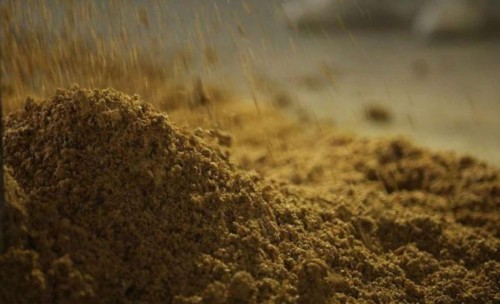 粉碎好的小麦掺和一定比例的母曲和水进行拌料,在这过程中要随时保持麦料含水量在规定的参数值范围内,不能过湿也不能过干,这样拌出来的曲料才没有干粉和疙瘩,才能手捏成团,松手即散。