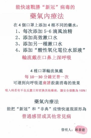 此事实充分证明:澳门发明家林章建以“药气内疗法”根治“新冠”疫情在珠海“中大五院”临床试验获得初步成功,证明“药气内疗新途径”能够快速根治“非典”疫情!