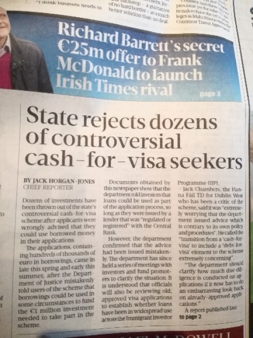 此次官方声明发出之前不久,爱尔兰当地知名媒体Business Post就已经对于IIP计划申请人资金来源审核做过报道。报道指出,IIP计划遭议会质疑,缺乏资金透明度,评估委员会的组成也没有明确公布。爱尔兰司法局将会审查之前已经获批的申请,以确定融资贷款方式是否已在爱尔兰投资居留计划(IIP)中被广泛使用。
