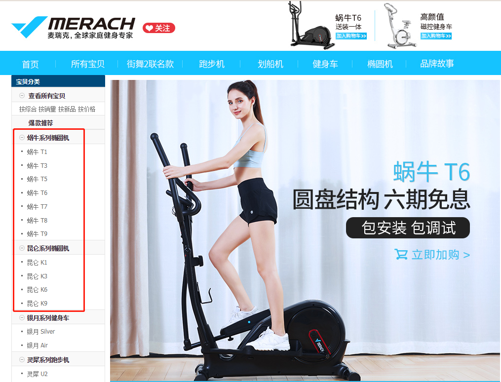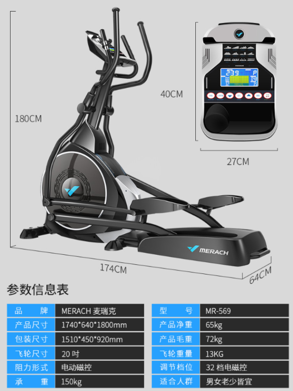 不仅如此,麦瑞克还按不同人群的使用需求对椭圆机进行了系列划分,比如蜗牛系列主要针对体重较小、预算较少、家庭面积较小的人群,款式多为飞轮后置;而昆仑系列则属于中高端产品,针对个头高大、预算充足且对健身有一定要求的人群而定制。