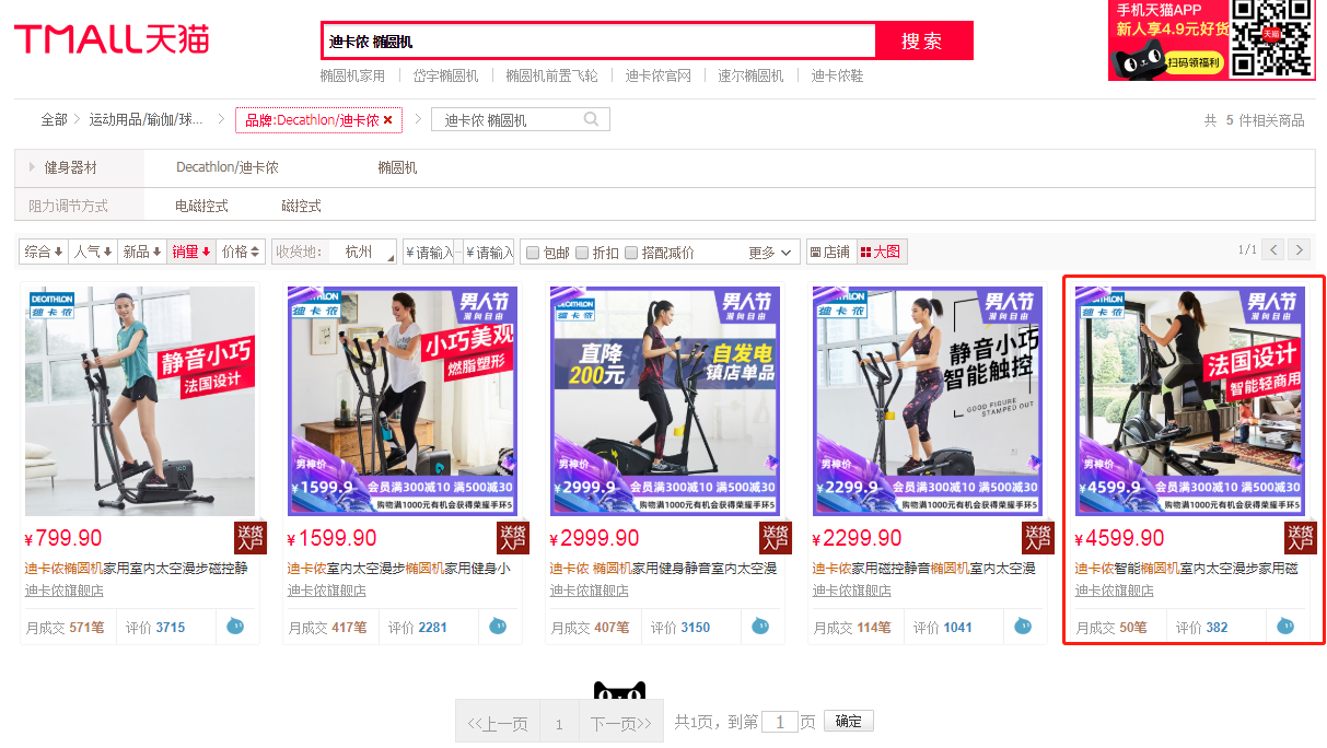 掰扯完了麦瑞克的椭圆机,我们来看看迪卡侬。迪卡侬目前在京东上面没有椭圆机出售,只在天猫上面有少量几款,并且大部分是飞轮后置款式,前置椭圆机只有一款。