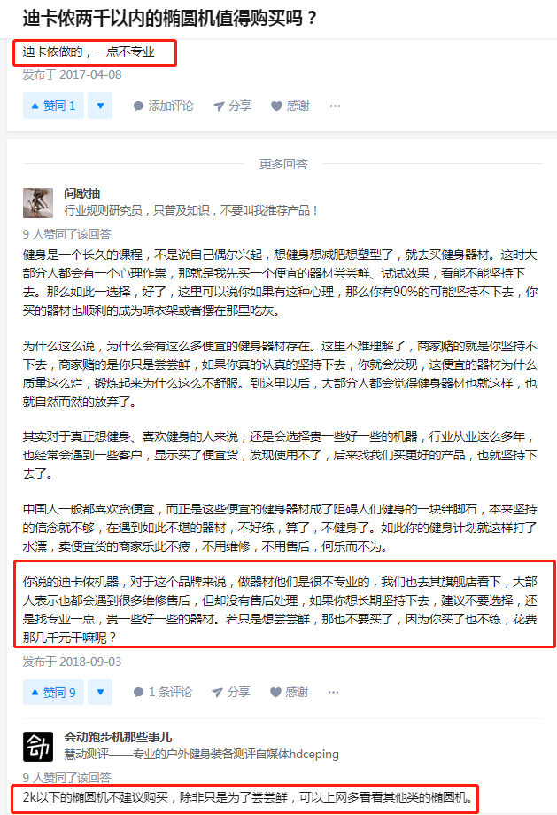 迪卡侬可以选择的款式比较少,4款后置,1款前置。目前在网上炒得最火的是迪卡侬EL-100。很多人购买的理由是价格便宜(799元),占地小。在网上搜一下这款机器的评价如下: