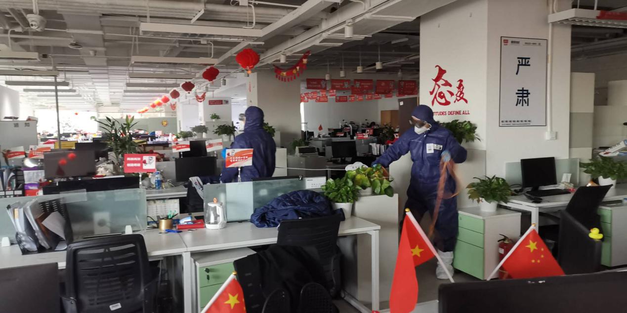 复工前夕,国美总部及各个分公司办公场所都聘请了专业的消毒团队,为办公场所进行了全面的消毒。