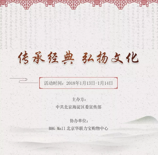 近日,为了响应党中央,关于“全面复兴中华传统文化的号召”,中共北京海淀区委宣传部,联合BHG Mall北京华联力宝购物中心,特将传统手工艺,请到了BHG Mall北京华联力宝购物中心,以展览展示、互动、制作的方式,给广大市民送上了一场文化盛宴。