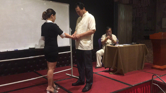 (图为专家现场讲课并现场展示道医快速治病特技)