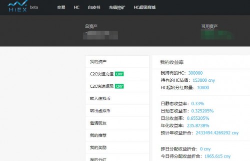 为了让HC有更好的流通机制,并且充分保障HC持有者的权利。HiEX引入了数字资产银行机制。引入了“持币既挖矿”,用户通过持有平台币即可享受挖矿的超高收益。早期HiEX官方将拿出2000万USDT补贴用户。未来的收益分配将根据HC的HiEX Found投资基金会的投资收益进行,届时我们将投资收益的80%分配给HC的持有用户!