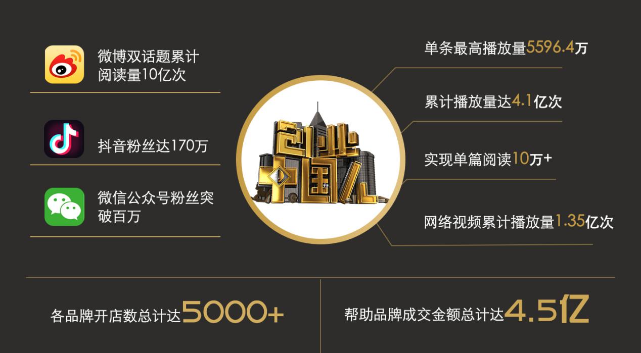 《创业中国人》在2018年11月30日上线后,已有20多家上市公司,近200家优秀企业,在平台上得到多维助力,在打造企业家个人IP和传播产品特色的同时,平台打通上游,链接资本与企业,实现投资金额达3亿,打通下游链接企业与大众创业者,帮助品牌成交金额总计达4.5亿,各品牌开店数总计达5000余家,直接和间接拉动连锁产业市场金额达百亿,解决大众万人就业,《创业中国人》在短短的一年来,用融媒体做为流量入口,国家级电视媒体公信力背书,公众号粉丝突破百万,实现单篇阅读10万+,抖音粉丝达170万,累计播放量达4.1亿次,单条最高播放量5596.4万,网络视频累计播放量1.35亿次,微博双话题累计阅读量10亿次。