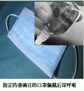 通过上述方法轮流替换佩戴四种不同药液的口罩24小时后,潜伏在呼吸道的病原体会大量减少,“非典”症状就会转化为普通感冒或其它常见病。血液里面还剩余的病原体,使用治疗普通感冒或其它常见病的针剂和口服药就可以把它快速消灭。如有其它并发症应由该并发症的专科医生进行治疗。