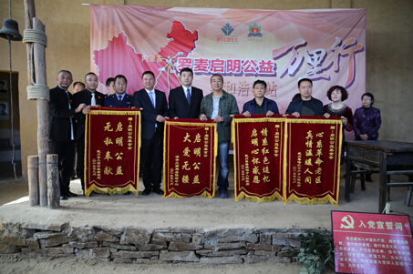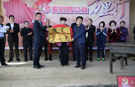 仪式上,王秉坤就本次活动的重要意义发表了致辞,李建勇代表基金会陶国林理事长向革命老区的抗战老兵、烈士家属致以崇高的敬意,向当地的困难群众表示亲切地慰问。上官应旭副局长、张耀书记代表受赠方对罗麦科技集团和启明公益基金会表达了由衷的感激之情;同时,现场举行了揭牌仪式——将大青山抗日游击根据地展馆作为北京罗麦科技有限公司的“爱国主义教育基地”,并回赠了四面锦旗。