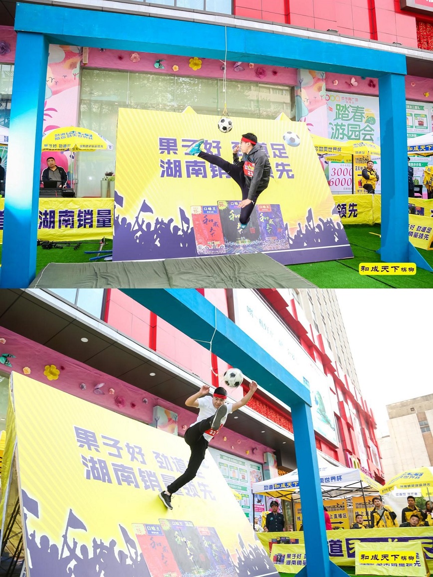倒挂金钩!同门比拼!魏晋古装!继昨日“和成天下劲爽足球挑战赛”常德站开赛后,今天在步步高广场继续上演高手在民间戏码,这不仅仅是一场足球与槟榔的盛宴,参与活动闯关还有众多现场大奖等待着你来发掘!