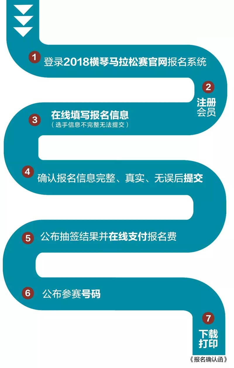 报名费用支付成功后,即完成相应报名流程。待报名工作截止后,选手可根据赛事官方公告相关说明登录横琴马拉松官方网站查询参赛号码、下载打印《报名确认函》、查询竞赛物品领取相关流程及相关要求。