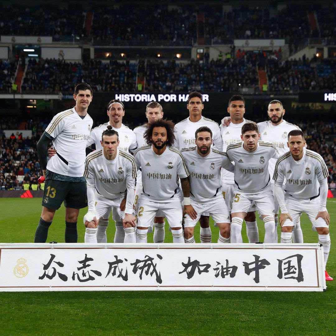 北京时间2月17日凌晨,西甲豪门皇家马德里队在主场迎战塞尔塔队,在伯纳乌的球员通道,皇马球员身穿印着“中国加油”字样的球衣携手小球童一起入场,同时现场还放置了印有“众志成城,加油中国”的加油板,皇马全队球员在这块加油板拍摄首发照,以此向正在抗击新冠肺炎疫情的中国人民表达支持。