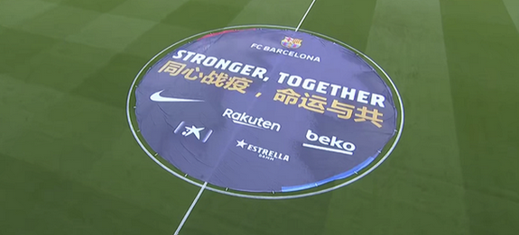 这并不是西甲联赛和西班牙俱乐部第一次为中国加油打气了,同样是在西甲赛场,作为皇马的“终极对手”,巴萨此前也进行了支持中国人民抗击新冠肺炎疫情的仪式,梅西等球员与华裔球童手牵手进入球场,小球童身着印有“中国加油”的球衣,球场的中圈展现有“同心战疫,命运与共”的巨幅标语,向受到新冠肺炎疫情影响的中国人民表达支持与鼓励。同时巴萨在官方声明中呼吁:逆境当前,全球人民与中国同命运,这不仅仅是中国人民的战“疫”,我们应该团结一致,共同对抗疫情。