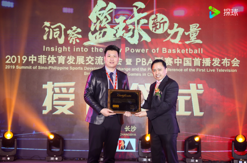 10月23日,2019中菲体育发展交流峰会暨PBA联赛中国首播发布会在长沙举行,探球宣布拿下PBA在中国大陆地区独家转播权并完成授牌仪式,PBA联赛正式进入中国。