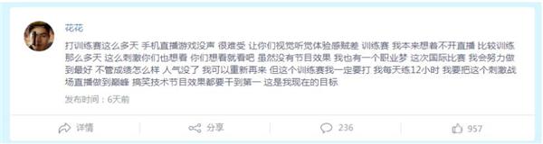 “我想认真对待这次的训练赛,因为我想打出气质来,我觉得我能行。”“人气没了,我可以重新再来,但这个训练赛我一定要打,我每天练12小时,我要把这个刺激战场直播做到巅峰,搞笑技术节目效果都要干到第一,这是我现在的目标。”在这些动态下,粉丝们纷纷为他加油,转而开始支持并相信他的决定。
