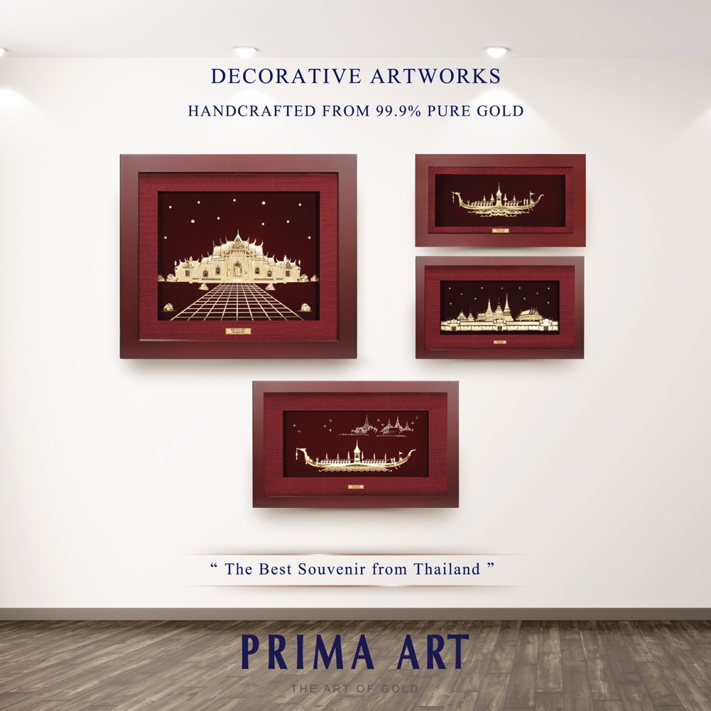 PRIMA ART 是一种由99.9%(24K)黄金制成的黄金手工艺品,由精通工艺的泰国工匠精心设计制作,最终得到精美绝伦的高端艺术品,可以说是匠心独具而成,并且包含吉祥寓意。适合在不同场合作为祝福礼品,送给自己尊敬的人,可用作家居、商店、办公室装饰,让这些地方看起来精美漂亮,同时反映了独特优美的泰国文化。非常适合作为泰国特色文化纪念品,送给尊敬的人,艺术品价值2380泰铢- 268000泰铢。