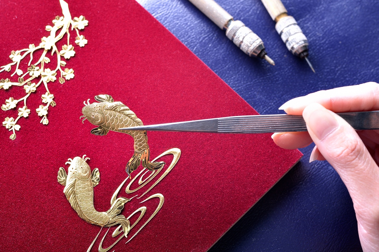 黄金浮雕画 (FRAME) 将99.9%纯金盘(24K),手工制作成各种花纹,并组合成一件完整的艺术品。