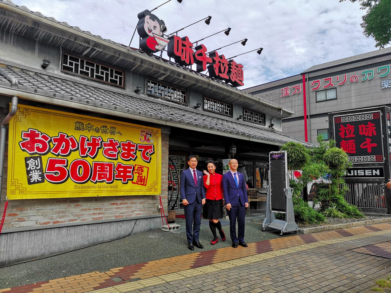 左起丸善食品工业株式会社社长竹本博则、味千拉面重光产业株式会社副社长重光悦枝、味千(中国)股份有限公司首席运营总裁—吴晓彬