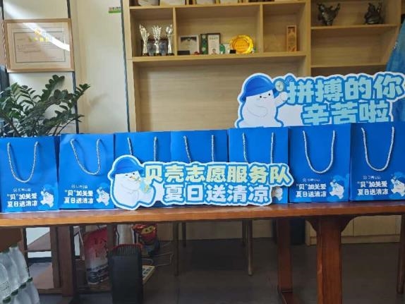 今年8月,贝壳找房厦门站响应思明团区委号召,把20家门店升级为“青新驿站3.0”,免费向户外工作者提供饮水、充电、歇脚等8项基础服务。除此以外,一支由店长、经纪人、后勤伙伴自愿报名的“厦门贝壳志愿服务队”也应运而生——平均年龄28岁,一半以上是95后房产顾问。他们是青新驿站服务新就业群体的重要补充,为骑手提供“歇脚、问路、应急、政策速递”四项基础服务。