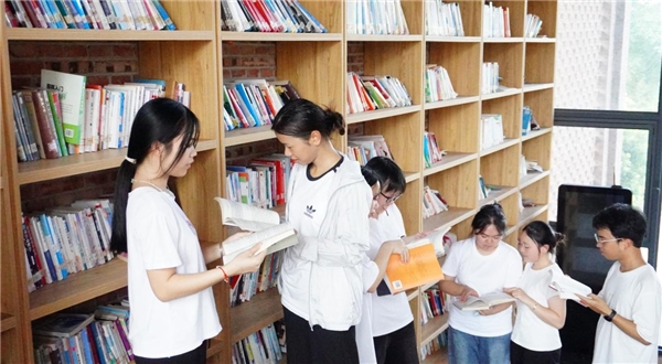 走近文创园,一块具有特色的立牌出现门口。“文创园”三个大字格外醒目,旁边还有“各族青少年交流计划实践基地”的字样,底下的壮族铜鼓与荷花样式令人陶醉其中。进入文化园中,先是一尊饱含科技感的雕塑落入眼中,而后面的屋子作为农家读书角使用。走进农家图书角,两边一整面的书籍就使我震惊不已。一个乡村读书角中,拥有着如此大量的藏书,无疑是令人值得称赞的,在平常无论是村民还是游客走入其中定能获得知识的熏陶,实践队员们也在其中驻足观看其中书籍并帮忙整理图书。文创园除了拥有农村读书角外,还有着精美无比的扎染布匹成品展示与旧物件摆放的展示区域等。多种多样的展出区,使得我目不转睛,也能感受出文创园在建设上的用心,也能让人们更加感受到了文化产品的魅力。