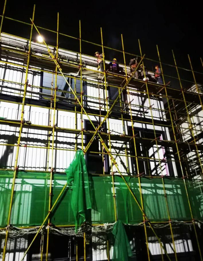 连日来,当万家灯火渐次暗淡的时候,雄安新区建设者之家一号营地的建设工地却是灯火通明。一盏盏照明灯点亮了雄安的夜晚,一个个恒通科技人挑灯夜战、争分夺秒、轮班作业。