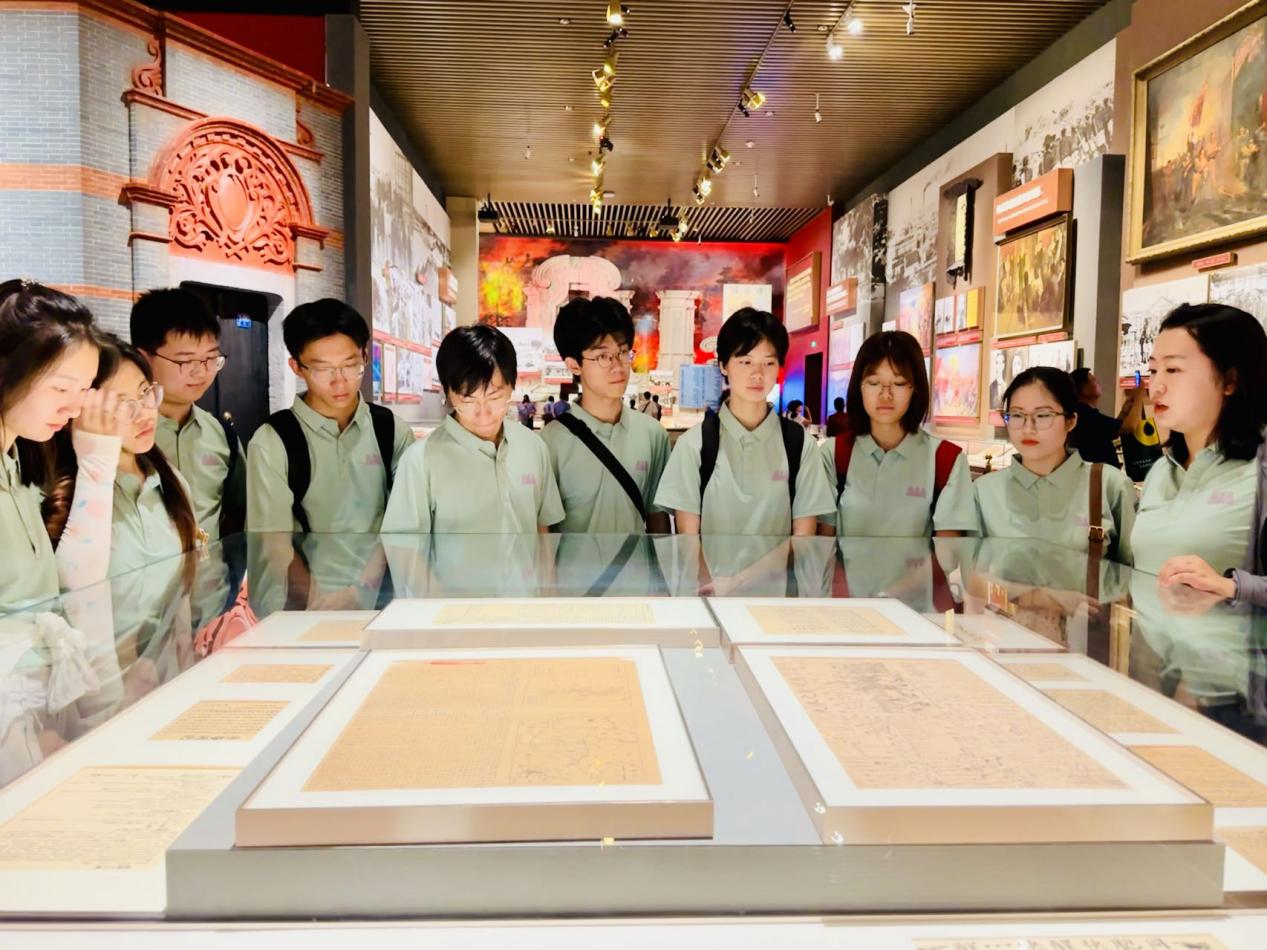 在习总书记“重走初心之路”的精神感召下,此次实践之旅从深刻的党史学习开启,全体实践队员踏入中国共产党历史展览馆。这里,每一件文物,每一张图片,都仿佛在讲述着那段激情燃烧的岁月,生动地再现了中国共产党百年来的伟大实践和辉煌成就。在讲解员的带领下,实践队员们直观地感受到祖国强盛与时代青春力量的紧密结合。同时,为了进一步加深大家对党史的学习认识,领队老师李丹琦组织队员们调动所学党史知识,鼓励大家化身“小讲解员”,共同分享心得体会,在交流讨论中坚定青年有为,大学生如何树立远大理想抱负,科技强国如何在专业中得以实现,从而为中华民族伟大复兴的中国梦不懈奋斗。