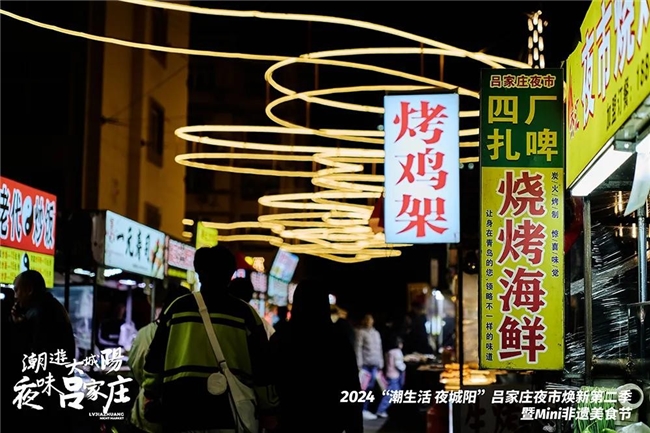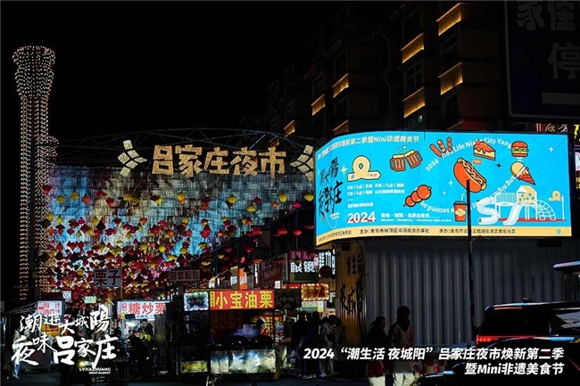 10 月 18 日-20 日,在青岛市城阳区文化和旅游局、青岛市城阳区商务局的指导下,由青岛市城阳区城阳街道办事处主办,城阳街道吕家庄社区承办的 2024“潮生活 夜城阳”吕家庄夜市焕新第二季暨 Mini 非遗美食节惊艳亮相。这是继 2023年城阳区城阳街道对城阳街道夜经济实施重新定位打造,推出“潮游大城阳 夜味吕家庄”吕家庄夜市焕新以来,进行的第二季焕新——尽管在 2023 年第一次焕新中,吕家庄夜市取得了一个月内六登央视的瞩目成绩,但在“吕家庄夜市” IP 形象的建立过程中,求新、求变,不断进行自我更新早已成为夜市管理者吕家庄社区的一种自觉意识。此次焕新正是基于 2023 焕新取得的成果,积极面对空间发展受限的难题,充分兼顾发展的实际需求,由“空间”和“时间”对吕家庄夜市 IP 升级的一次深耕细作。