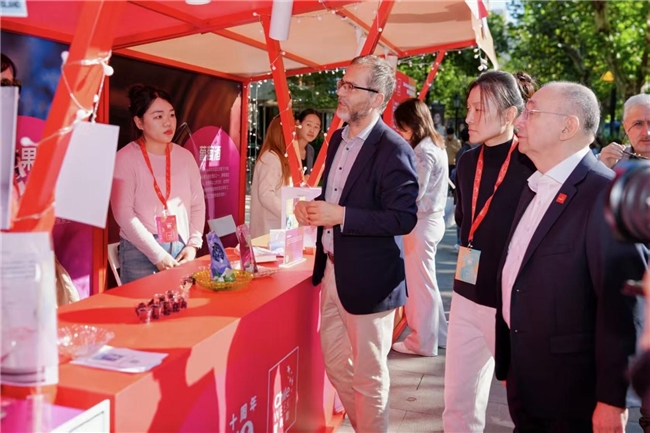 上海,2025年10月26日。 本周末,上海新天地街区被四十余个智利展位点亮,来自南美的水果、肉类、海鲜、葡萄酒及皮斯科酒等产品吸引了众多市民与游客驻足品鉴,为第十届智利周的闭幕活动增添了浓浓的节日气氛。
