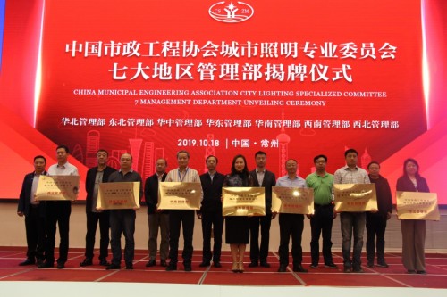 常州市住房与城乡建设局副局长袁茂新代表本次会议的举办地东道主上台致辞。他表示希望看到更多更好的城市照明摄影作品,为更多城市建设提供更好的参考和借鉴。南京市路灯管理处副处长刘磊实在致辞中表示,城市照明研讨会暨中国城市照明摄影大赛华东区宣导会的举办,以及中国市政工程协会城市照明专委会华东区管理部的落地,都是为了更好地发展城市照明,服务人民大众。在庄严大气的音乐中,中国市政工程协会城市照明专委会七大区管理部揭牌仪式正式开始!华北管理部、东北管理部、华东管理、华中管理部、华南管理部、西南管理部、西北管理部的代表纷纷上台揭牌并合影。
