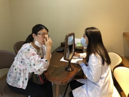 尽忠职守不慌不忙,爱心奉献不假言辞。敬爱的医护工作者们,白衣是你们的战袍,你们的坚守和奉献,值得被我们尊重和敬仰!因此,华熙生物邀请到了上海铂诗玥医疗美容门诊部的指定注射医生,为唐恩护士做了详细且专业的术前诊断,诊断结果:额头不饱满,鼻梁低平,导致面部轮廓不清晰,不立体,没有层次感,缺失几分灵气。针对此等问题,上海铂诗玥医疗美容门诊部的指定注射医师为唐恩护士制定了个性化的润致玻尿酸注射方案以及注射剂量。