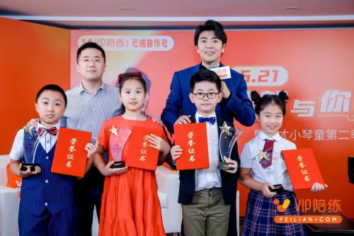 VIP陪练创始人兼CEO葛佳麒(左一)为少年组优胜琴童颁奖