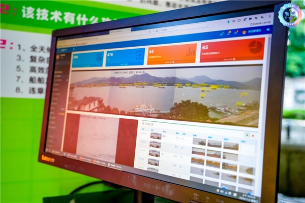 华南理工大学团队在现场演示介绍最新研发的远程水上监控系统,观展人员可通过视频实时看到长江口岸的船只情况。据介绍,智能卡口系统充分运用视频AI技术、视频与AIS融合技术,构建“多维立体、全面精准”的感知体系,能够有效解决当前卡口“看不清、看不远、看不全”的问题,保障水运安全可控。