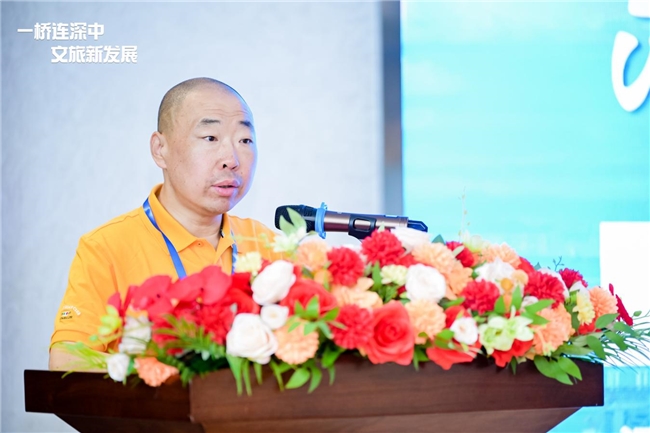 深圳市旅行社行业协会常务副会长、深圳市旅行社行业协会零售连锁分销专业委员会主任、国旅(深圳)国际旅行社有限公司董事长成杨出席活动并致辞,他表示,深中通道必将进一步推动两地文旅融合发展,带来更多的发展机遇。未来,深中将携手并进,深入挖掘两地文化资源,共同打造具有当地特色的文旅产品和线路,为旅客带来丰富的旅游体验。相信在两地的共同努力下,一定能打造出更具影响力、号召力的文旅品牌和项目,为两地的经济社会发展注入新活力。