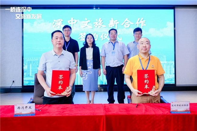 为促进深圳、中山两地文旅产业融合发展,实现资源共享,互利共赢,7月1日,“一桥连深中 文旅新发展”深中文旅交流活动暨合作签约仪式在中山市翠亨新区举行。活动由深圳市文化广电旅游体育局、深圳市罗湖区文化广电旅游体育局指导,深圳市旅游协会、深圳市旅行社行业协会主办。深圳市罗湖区文化广电旅游体育局、中山市翠亨新区管委会、深圳市旅游协会、深圳市旅行社行业协会零售连锁分销专业委员会成员单位、深圳市罗湖区文化旅游产业链党委委员单位、广东西湾开发投资有限公司、广东翠亨文旅有限公司等相关领导参加本次活动。