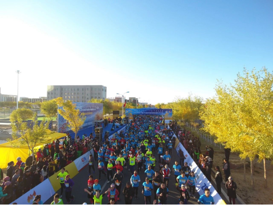上午8点30分,大家齐唱国歌后,千名选手涌出起跑线,怀着憧憬与希望,踏上了这次额济纳胡杨林的跑步之旅。