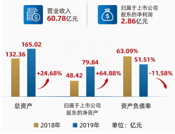 4月13日晚,招商积余(001914.SZ)发布2019年年度报告。根据公告显示,2019年公司实现营业收入60.78亿元,较上年同期下降8.68%,其中物业管理板块营业收入达到51.50亿元,资产管理业务营业收入6.16亿元,其他业务营业收入3.12亿元;归属于母公司所有者净利润2.86亿元,较上年同期下降66.59%,利润同比下降主要系上年公司转让三家房地产项目公司取得投资收益所致,若剔除上述子公司转让投资收益影响,2019年利润总额同比增加4.38亿元,较上年同期增长2,502.72%;归属于母公司所有者净利润同比增加4.26亿元,较上年同期增长334.95%。总资产165.02亿元,较上年同期增长24.68%;归属于上市公司股东的净资产79.84亿元,较上年同期增长64.88%;资产负债率51.51%,较上年同期下降11.58%。